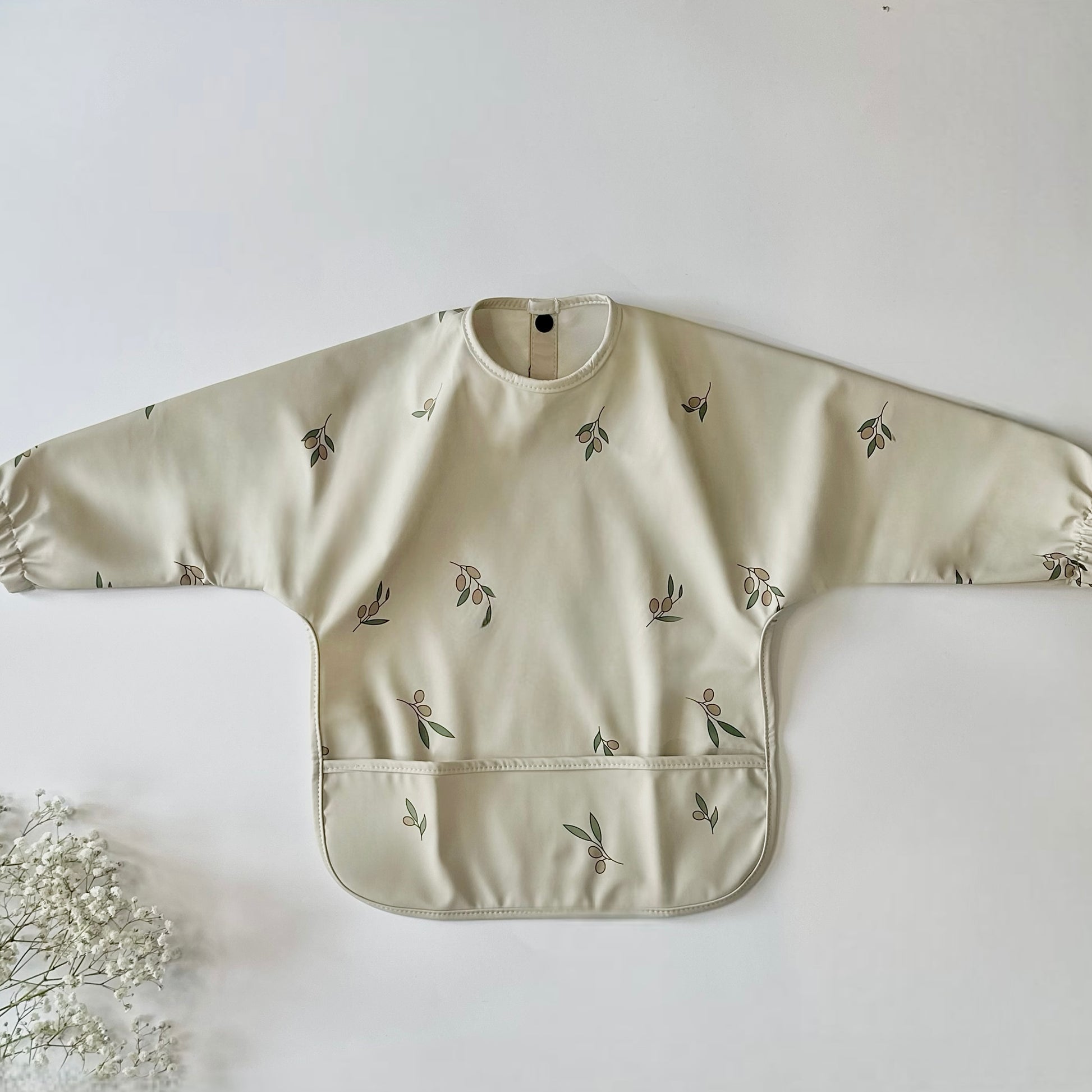 Elevate your baby's mealtime with our Baby Weaning Apron Bib in Olive. This innovative bib provides full coverage and easy clean-up during the weaning process. Say goodbye to messy meals and hello to stress-free feeding. Now you can enjoy watching your little one explore new flavours and textures without the worry of a mess!