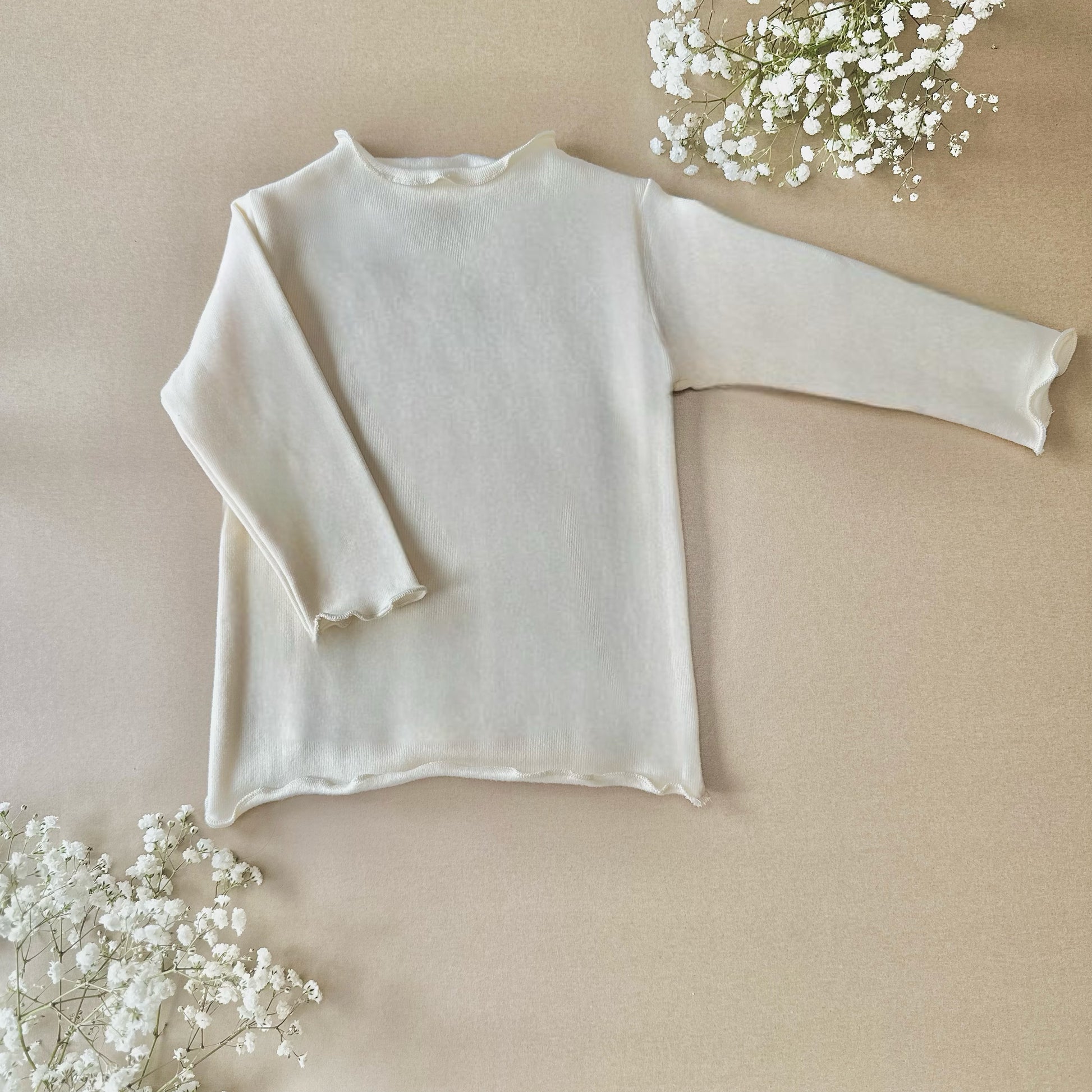 This cream frill neck pullover is perfect for your little ones! The dainty frill adds a playful touch to this cute top. Keep your babies warm and cosy in this must-have piece, the perfect addition to any baby's wardrobe.